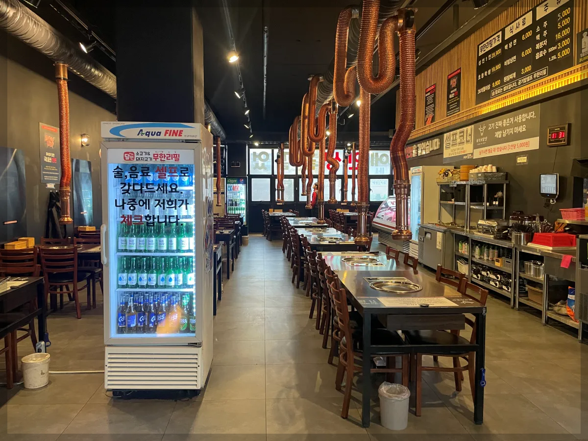 다른 고깃집에서는 식당 안에 들어가면 겉옷을 보관할 수 있는 커다란 비닐을 주는데, 이곳은 애초에 식당 안으로 들어가기 전부터 겉옷을 벗고 들어가는 시스템이더라고요. 아무래도 식당 안에서 보관하는 것보다 냄새가 옷에 덜 밸 거 같아서 마음에 들었습니다. 사실 고기 냄새가 한번 배어들고 나면 페브리즈로도 쉽게 없애지는 못하니까요.