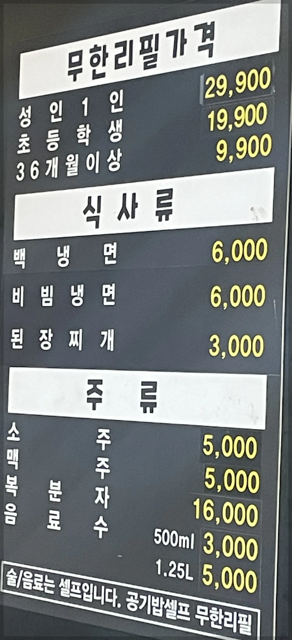 무한리필 가격은 성인 1인 기준으로 29,900원 입니다. 3만원이 채 안되네요.