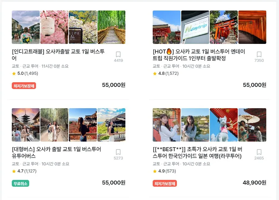 교토 일일투어 검색을 해보면 여러 여행사의 상품을 볼 수 있는데요.