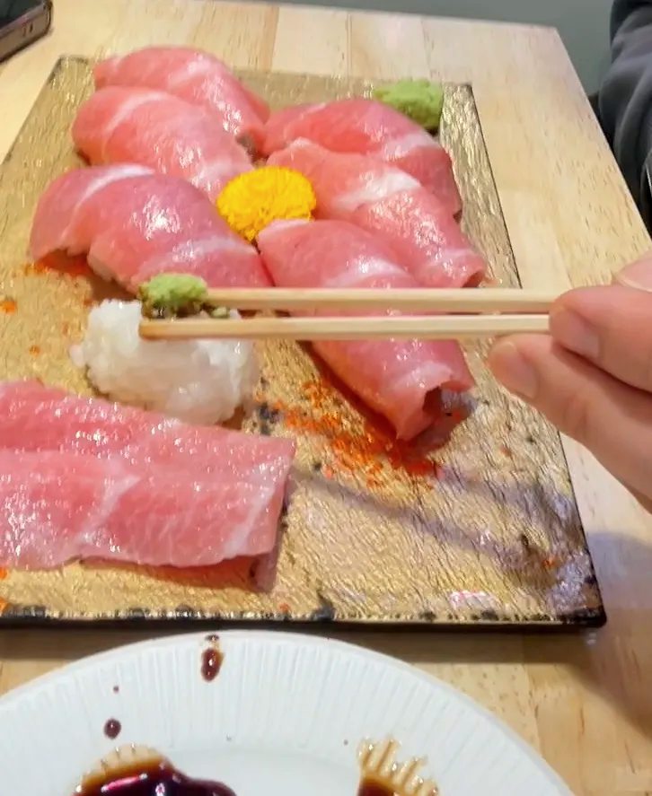 주문방식은 직관적으로 안내되어 있었어요. 일본어를 몰라도 전혀 어려움 없이 주문할 수 있어서 편리했습니다. 먼저 쇼케이스에서 마음에 드는 횟감을 선택한 후, 초밥, 회, 덮밥 중 원하는 조리법을 직원에게 알려주면 돼요 (이때 계산도 같이!)