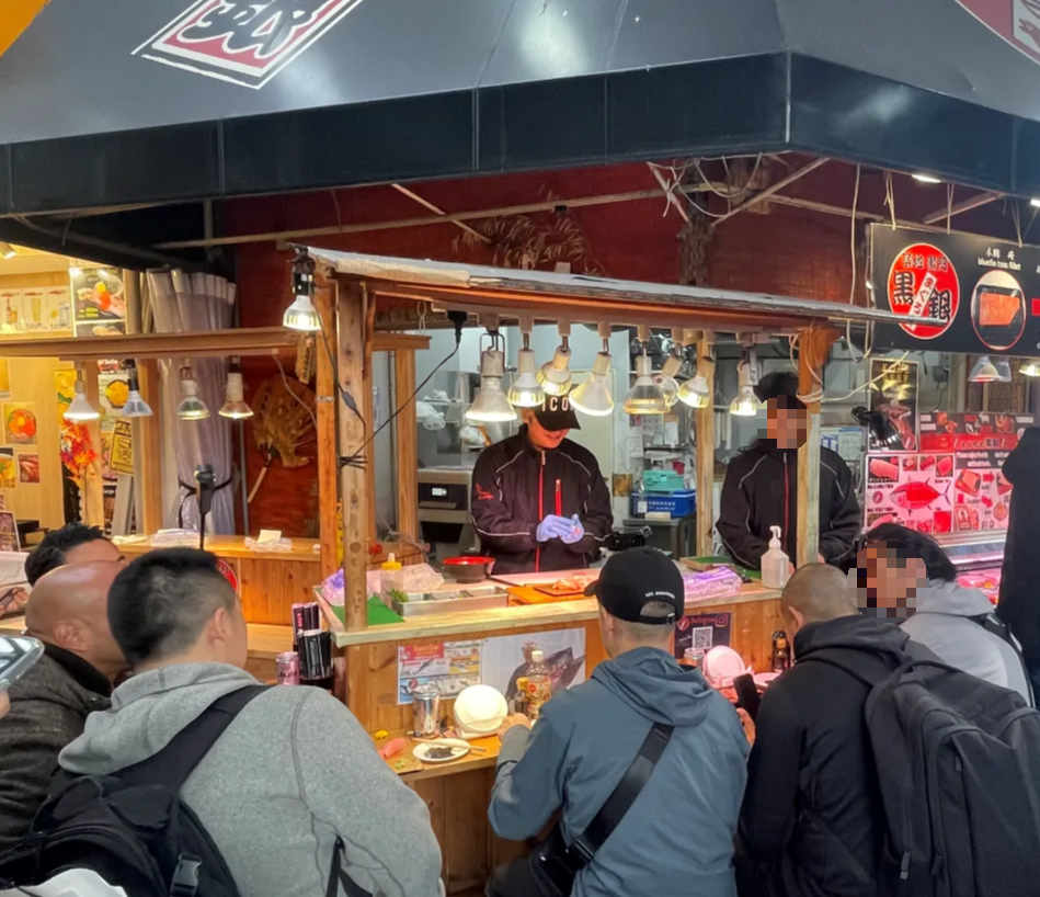 솔직히 시장치고 가격대가 저렴하지는 않았어요. 한조각이 손바닥만 한데 가격이 5만 엔 후반대부터 13만 엔 사이로 형성되어 있었거든요. 그런데도 손님이 끊이지 않는 걸 보면 맛이 확실히 보장되는 것 같았어요.