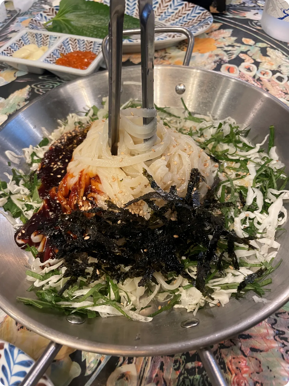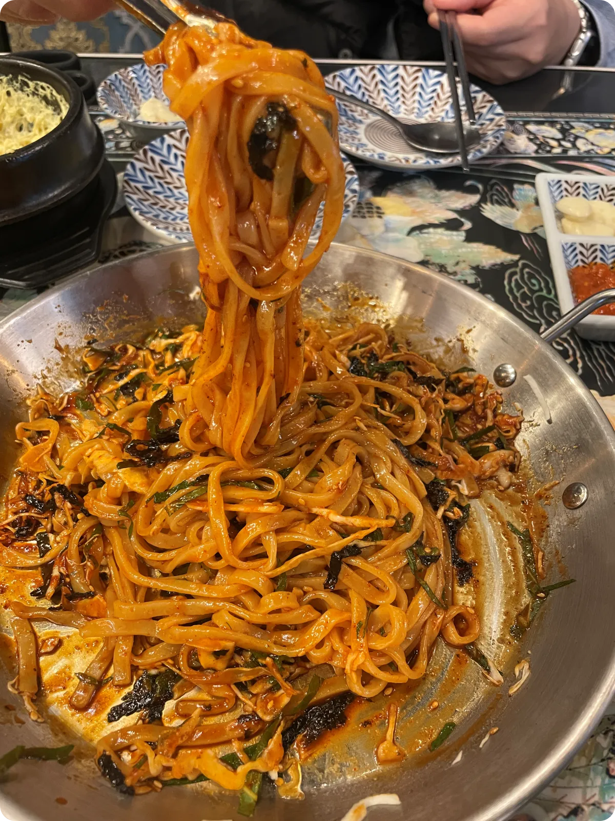 쫄면 양념과 비슷하지만 면이 되게 부드러운 칼국수면이어서 호로록 잘 넘어갔어요.